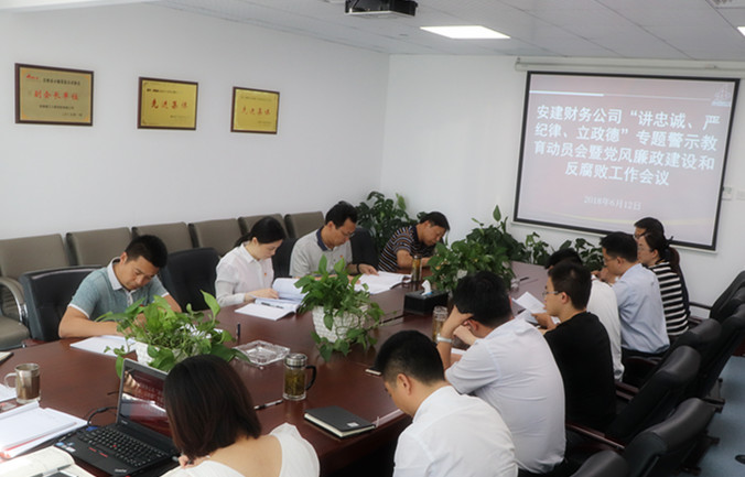 6月12日,安建财务党总支组织召开“讲忠诚、严纪律、立政德”专题警示教育动员会暨党风廉政建设和反腐败工作会议。公司党总支书记潘琳主持会议并讲话,公司领导班子、中层以上管理人员及各党支部书记、支委参加了会议。
